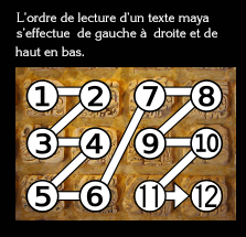 Today, it can be said that Maya writing is of the logo-phonetic type. Thanks to this progress in decipherment and archaeological excavations, we are forced to change the view we had of the Mayas by understanding everything they left in the hieroglyphic corpus currently composed of more than ten thousand texts. To know the content of a Maya text, one must follow the reading order which is done from left to right and from top to bottom.
