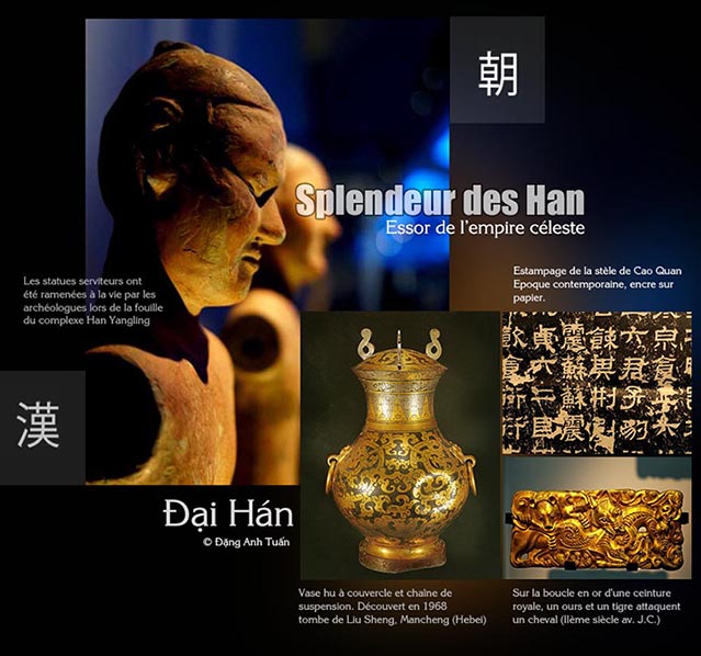 Then, by finding the virtue of the earth from the fact that Liu Bang came from the common people, Wudi henceforth adopted the element « Earth » and chose the color yellow associated with it as the imperial color of the Han because this choice was established according to the teaching of the Five Elements (Wu Xing) (Ngũ Hành). By its color,