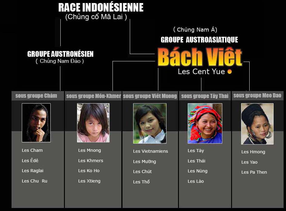 Les Bai Yue étaient probablement les héritiers de la culture Hoà Bình (9000-5600 av J.C.), une découverte extrêmement importante de la part de l’archéologue française Madeleine Colani dans la province Hoà Bình du Vietnam. Ils étaient un peuple d’agriculteurs avertis: ils cultivaient le riz en brûlis et en champs inondé et élevaient buffles et porcs. Au moment du contact avec les gens nomades du Nord d’origine turco-mongole, les ancêtres des Hán (ou Chinois), ils étaient appelés par ces derniers, sous le nom « les Yue ». Ceux-ci vivaient disséminés au sud du bassin du fleuve bleu (ou Dương Tử Giang), de Zhejiang (Triết Giang) jusqu’au Jiaozhi (Giao Chỉ)(le Nord du Vietnam d’aujourd’hui) avant l’ère chrétienne et avaient l’habitude de se servir de la hache dans la riziculture et dans les combats. Les ancêtres des Vietnamiens (ou les Luo Yue) faisaient partie de ces Bai Yue, les propriétaires des tambours de bronze. ![]()