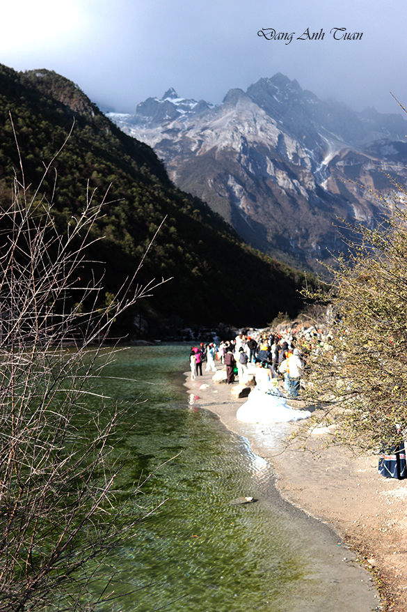 Située à environ 15 kilomètres de la vieille ville de Lijiang, la vallée de la Lune Bleue est une petite vallée au pied du mont du Dragon de Jade. Elle doit son nom à ses eaux claires, d’un vert émeraude. Formée par la fonte des neiges et des glaces, l’eau y reste glaciale toute l’année, même en été.