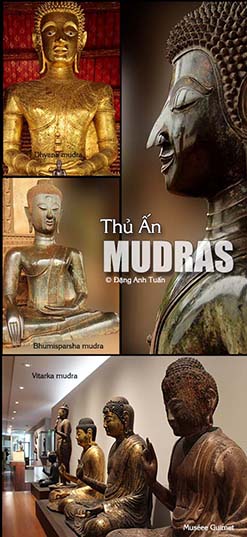 This is the case of the divinities of Buddhist pantheon (Bodhisattvas, Amithâba etc.). That is what we also find in multiple practices having a religious character (dances, rituals, meditations etc ..) without forget to remind what we have also seen in the Christian iconography with its saints placed at the entrance of the Middle Ages cathedrals. Some important mudras are frequently encountered in the Buddhist iconography.