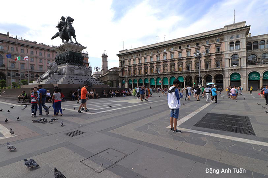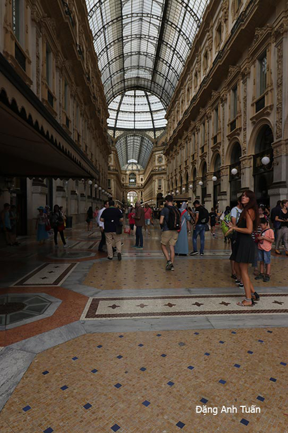 Tọa lạc tại phía bắc của đồng bằng Lombardie, Milan thường được xem là một trong những thành phố thời trang nổi tiếng hàng đầu ở Âu Châu cùng Paris và Londres. Milan không những là thành phố thứ nhì của Ý Đại Lợi mà còn là thành phố mua sắm lý tưởng nhất vì Milan hội tụ những nhà thiết kế tài ba như Giorgio Armani, Guccio Gucci, Gianni Versace vân vân…Galerie Vittorio Emanuele II ở quảng trường Plazza del Dumo được coi là trung tâm mua sắm cổ xưa nhất thế giới với hai tọa nhà mái vòm có trần nhà kính, một dài 196 m một ngắn 105,5 m. Hai tọa nhà nầy đụng nhau thành hình chữ thập latin ở giữa dưới vòm hình bát giác bằng kính cao hơn 40 m . Dưới vòm nầy, có 4 tranh ghép mảnh tượng trưng phù hiệu của 4 vùng Milan, Florence, Turin và Rome. Ở cuối cổng ngang mặt quảng trường Plazza del Dumo thì có một khải hoàn môn còn ở cuối cổng đối diện phiá sau là nhà hát lớn nhất ở Châu Âu thời đó Opéra La Scala. Galerie nầy được đặt theo tên vị vua đầu tiên có công thống nhất vương quốc Italie. Công trình kiến trúc đặc sắc này được thiết kế bởi kiến trúc sư Giuseppe Mengoni. Ông nầy một ngày trước khi công trình được hoàn thành (tháng 12 năm 1877), bị té chết từ trên đỉnh vòm khải hoàn môn.
