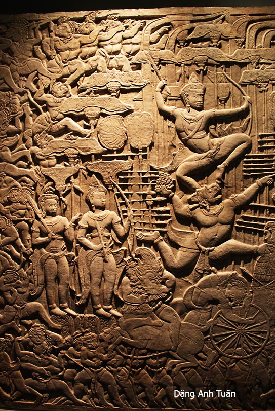 However, it was in perpetual conflict in the north with a new country, Đại Cồ Việt, which had just been freed from Chinese domination at the end of the 10th century, and in the south with the Khmers. The latter did not hesitate to sack the Po Nagar sanctuary in Nha Trang around 950 and stole the golden statue that had been installed there in 918 by King Indravarman II. The Chams waged merciless wars against the Khmers for more than a century (1112-1220). Their first serious clashes with Đại Cồ Việt were also noted in 979. Their capital was pillaged in 982 by the latter (the expedition of the great Vietnamese king Lê Đại Hành). Facing pressure from him, King Yang Sra Vijaya had to transfer his capital to the Vijaya region (Bình Định). This new capital lasted until 1471 before being moved to the Panduranga region (Ninh Thuận).