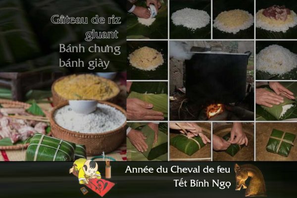 Une nuit, dans un songe, Lang Liêu vit sa mère qui lui fit savoir qu’il serait l’élu du trône. Il lui suffit de faire deux gâteaux de riz gluant, l’un en forme de carré (bánh chưng) avec de la viande et de la graisse au milieu pour symboliser le cœur et l’autre en forme de rondeur (bánh giày) sans garniture. Les gâteaux carré et rond représentaient respectivement la terre et le ciel car on crut à cette époque que la terre était plate et carrée et le ciel étai rond. Lang Liêu se réveilla et raconta le songe à sa femme. Le couple décida de suivre les conseils de leur mère pour confectionner les gâteaux, puis les faire bouillir dans une marmite en argile cuite.