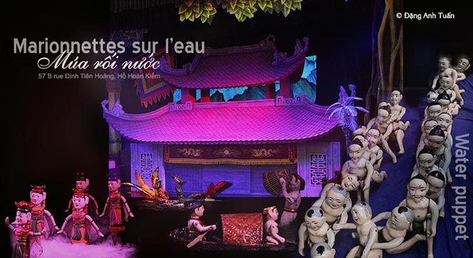 Issues du delta du Fleuve Rouge, les marionnettes sur l’eau sont la plus ancienne forme d’expression propre millénaire trouvée au Vietnam. Elles font partie du patrimoine culturel immatériel de l’humanité. On trouve l’âme du peuple vietnamien à travers ces marionnettes. C’est un spectacle à ne pas manquer si on a l’occasion de visiter la capitale Hanoï ou Saïgon (Hồ Chí Minh Ville).