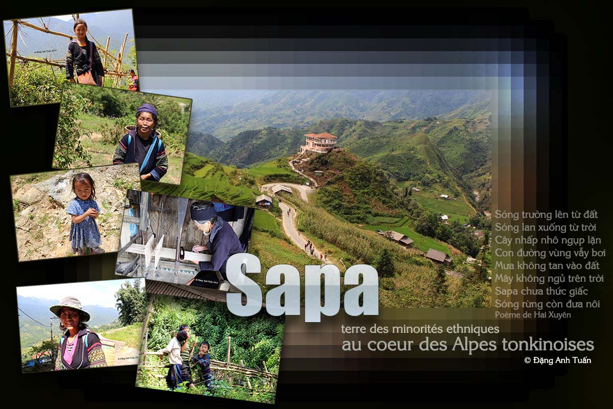 Sapa, située au cœur des Alpes tonkinoises, est l’endroit où les montagnes embrassent les nuages et inversement. C’est ici qu’est concentré un grand nombre des minorités ethniques du Vietnam. Outre les Hmongs, il y a les Yao (Ðào) rouges, les Thái, les Tầy, les Giáy, les Hoa et les Xa Phó.