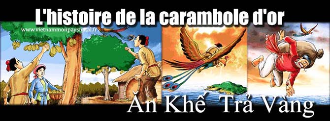 Once upon a time there were two brothers who divided an inheritance at the death of their parents. The elder, greedy and stingy, took all the wealth and left to his younger brother and his wife only a dilapidated hut and and a star fruit tree with juicy but stunted fruits. But the two younger spouses hardly complained and were contented with this meager share. They took care of their star fruit tree and watered it in such a way that the tree took back it vigor and bore lots of fruits. When the star fruits began to ripe, a extraordinarily large raven came every morning to eat them. No matter what they did, it was impossible for the couple to chase the bird away. Chargined, the wife lamented: » Poor us. As poor as we are, the only thing we count much on was what that star fruit tree brings us; now look, this bird ravaged it all. We will probably know starvation ». Miracle! The raven upon hearing those lamentations, perched down and replied in a human voice: » Star fruits I eat, with gold I pay, be ready with a three-foot bag and follow me to get it ».